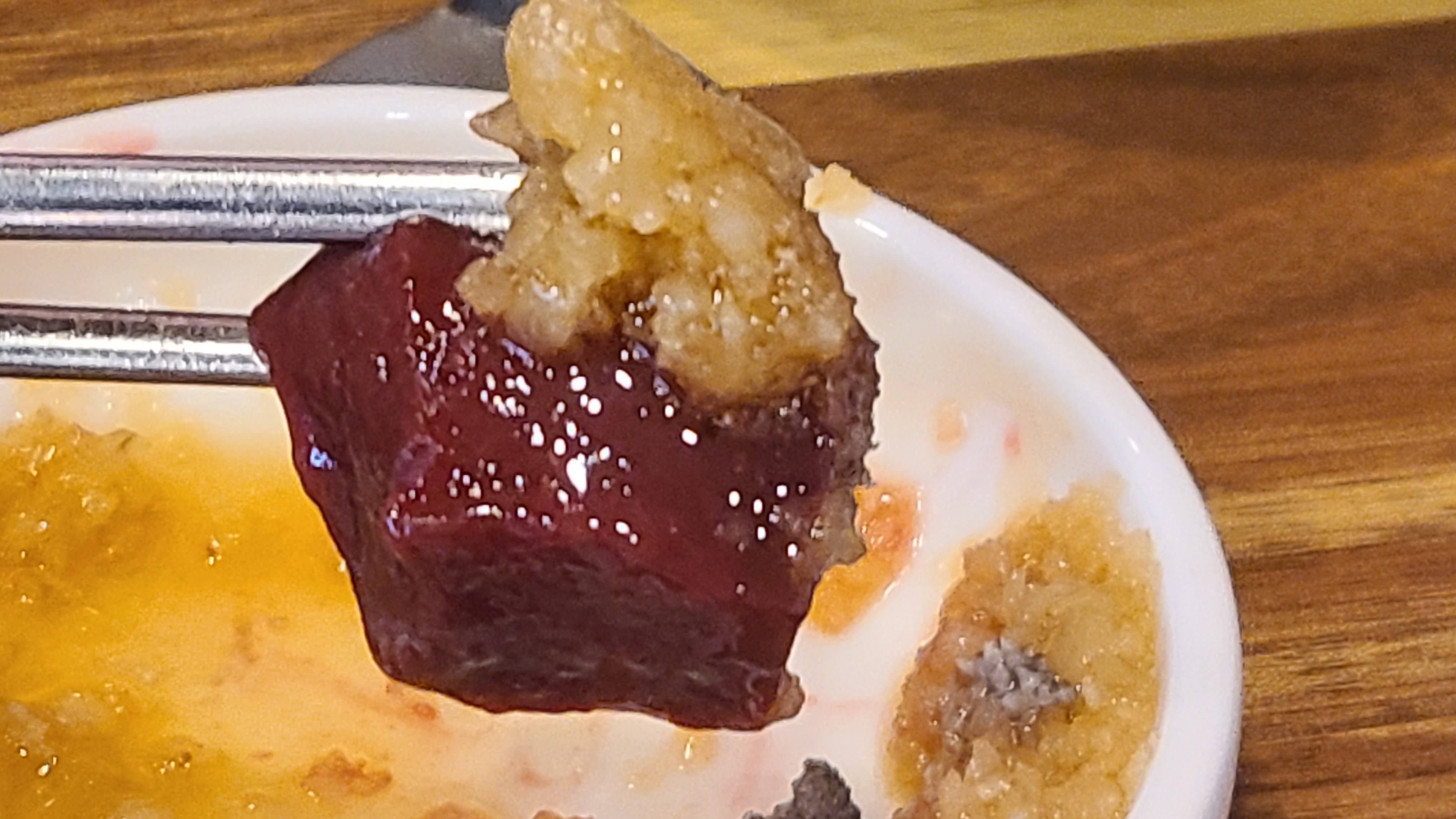 마지막으로, 소 간은 다양한 부위로 나누어져 있으며, 각 부위마다 특유의 맛과 식감을 가지고 있다. 중앙 부위는 부드럽고 촉촉한 식감이 특징이며, 주로 탕이나 찌개에 사용되며, 표면 부분은 조금 더 쫄깃하고 고소한 맛이 있어 구이나 볶음에 사용되기도 한다.