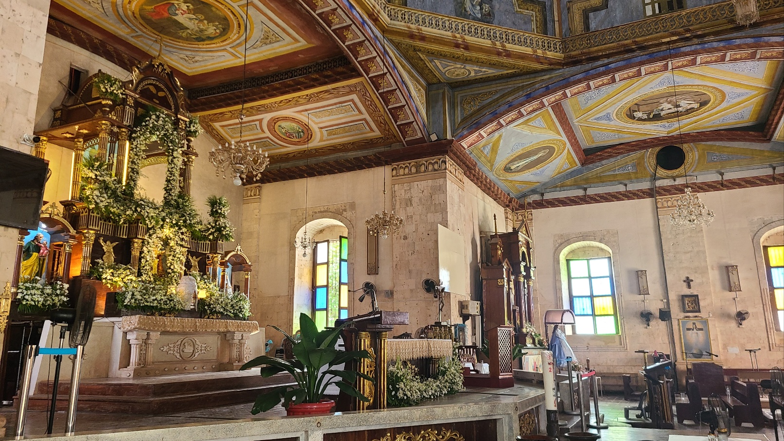 팡라오 성당 내부는 화려하게 장식되어 있으며,