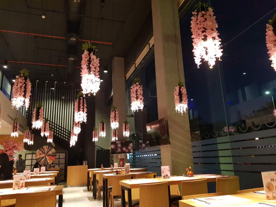 화사하게 벗꽃으로 장식된 일본식 레스토랑