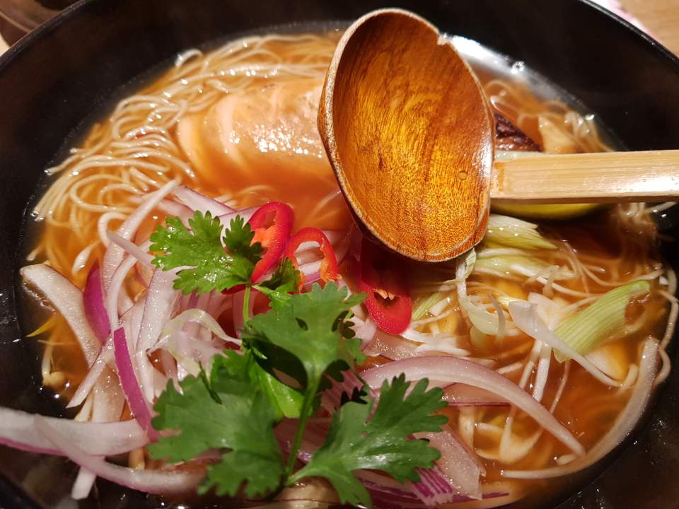 زیادہ تر جاپانی رامین سور کے گوشت کے شوربے سے بنے ہوتے ہیں ، لہذا آپ ایک دوسرے کے ساتھ ٹھنڈا ذائقہ اور گہری ذائقہ محسوس کرسکتے ہیں۔ کیچپ نے قدرے بوسیدہ محسوس کیا۔ تاہم ، نوڈلس تھوڑا سا ضبط ذائقہ کا ذائقہ اٹھاتے ہیں ، جو انوکھے جاپانی رامین نوڈلز کی خصوصیت ہے ، اور یہ اچھا لگا کہ اس نے نرم اور مہذب ذائقہ دینے کے لئے رام میں سور کا گوشت کی بجائے ابلا ہوا مرغ ملایا۔ اور میرے لئے برا نہیں تھا کہ بہت سارے منفرد مصالحے اور سبزیاں ڈالیں۔