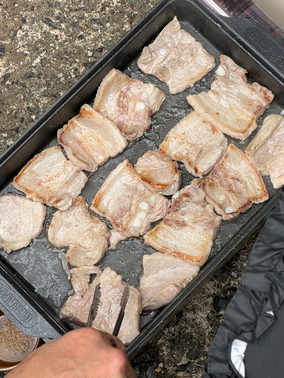 . 이야기도 하고, 고기도 뒤집고,