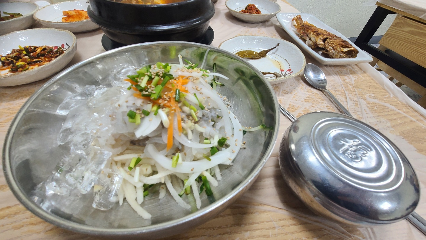 울산 방어진 맛집 중에 물회가 맛있다는 집이 있어서 한번 가보았는데 장사가 잘되어서 옆 가게를 인수 했는지 옆 쪽으로 가라고 해서 갔는데 새롭게 마련한 장소에서 식사를 준비 해 주었다. 손님이 많은 걸 보아 맛은 어느 정도 있는 것으로 보인다. 그래도 먹어 봐야 알지... 사람마다 스타일이 다르기 때문에 울산 방어진 맛집이라고 소문이 나도 가보면 알수가 없다. 여기 주변에 특 별히 맛집이라고 소문 난 곳은 별로 없어서 그냥 기대 하지 않고 갔다. 결론 부터 이야기 하면 중 상 정도 두명이 3만 8천원 정도면 싼 가격은 아니다. 한명이 1만 9천원 정도면 왠만한 음식은 다 먹을 수 있는 가격이다 결론적으로 싼 편은 아니다 물론 사이다 1병에 매운탕 그리고 물회 포함이지만.....울산 방어진 맛집을 가끔 소개 하지만 맛집이라고 하면 가격이 저렴하고 맛은 기본이 여야.... 맛집이 아닐까라는 개인적인 생각이 든다. 예전에 양남에 골목 아나고 횟집을 소개 한적도 있는데 그때도 가격 대비 양도 괜찮고 가격도 괜찮아서 올려 드렸는데 지금 다시 가니간 사장님이 예전 처럼 하지 않아서 많이 아쉬웠다. 예전에는 상업적이지 않은 듯한 느낌이 많이 들었는데 지금은 맛과 가격이 엉망이 된 듯한 느낌이 들어서 아쉽게 느껴졌다.