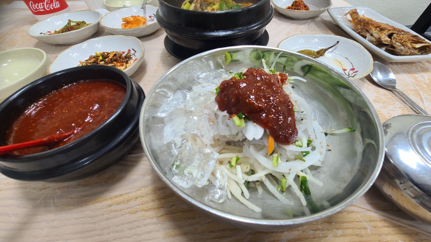 울산 방어진 맛집 중에 물회가 맛있다는 집이 있어서 한번 가보았는데 장사가 잘되어서 옆 가게를 인수 했는지 옆 쪽으로 가라고 해서 갔는데 새롭게 마련한 장소에서 식사를 준비 해 주었다. 손님이 많은 걸 보아 맛은 어느 정도 있는 것으로 보인다. 그래도 먹어 봐야 알지... 사람마다 스타일이 다르기 때문에 울산 방어진 맛집이라고 소문이 나도 가보면 알수가 없다. 여기 주변에 특 별히 맛집이라고 소문 난 곳은 별로 없어서 그냥 기대 하지 않고 갔다. 결론 부터 이야기 하면 중 상 정도 두명이 3만 8천원 정도면 싼 가격은 아니다. 한명이 1만 9천원 정도면 왠만한 음식은 다 먹을 수 있는 가격이다 결론적으로 싼 편은 아니다 물론 사이다 1병에 매운탕 그리고 물회 포함이지만.....울산 방어진 맛집을 가끔 소개 하지만 맛집이라고 하면 가격이 저렴하고 맛은 기본이 여야.... 맛집이 아닐까라는 개인적인 생각이 든다. 예전에 양남에 골목 아나고 횟집을 소개 한적도 있는데 그때도 가격 대비 양도 괜찮고 가격도 괜찮아서 올려 드렸는데 지금 다시 가니간 사장님이 예전 처럼 하지 않아서 많이 아쉬웠다. 예전에는 상업적이지 않은 듯한 느낌이 많이 들었는데 지금은 맛과 가격이 엉망이 된 듯한 느낌이 들어서 아쉽게 느껴졌다.