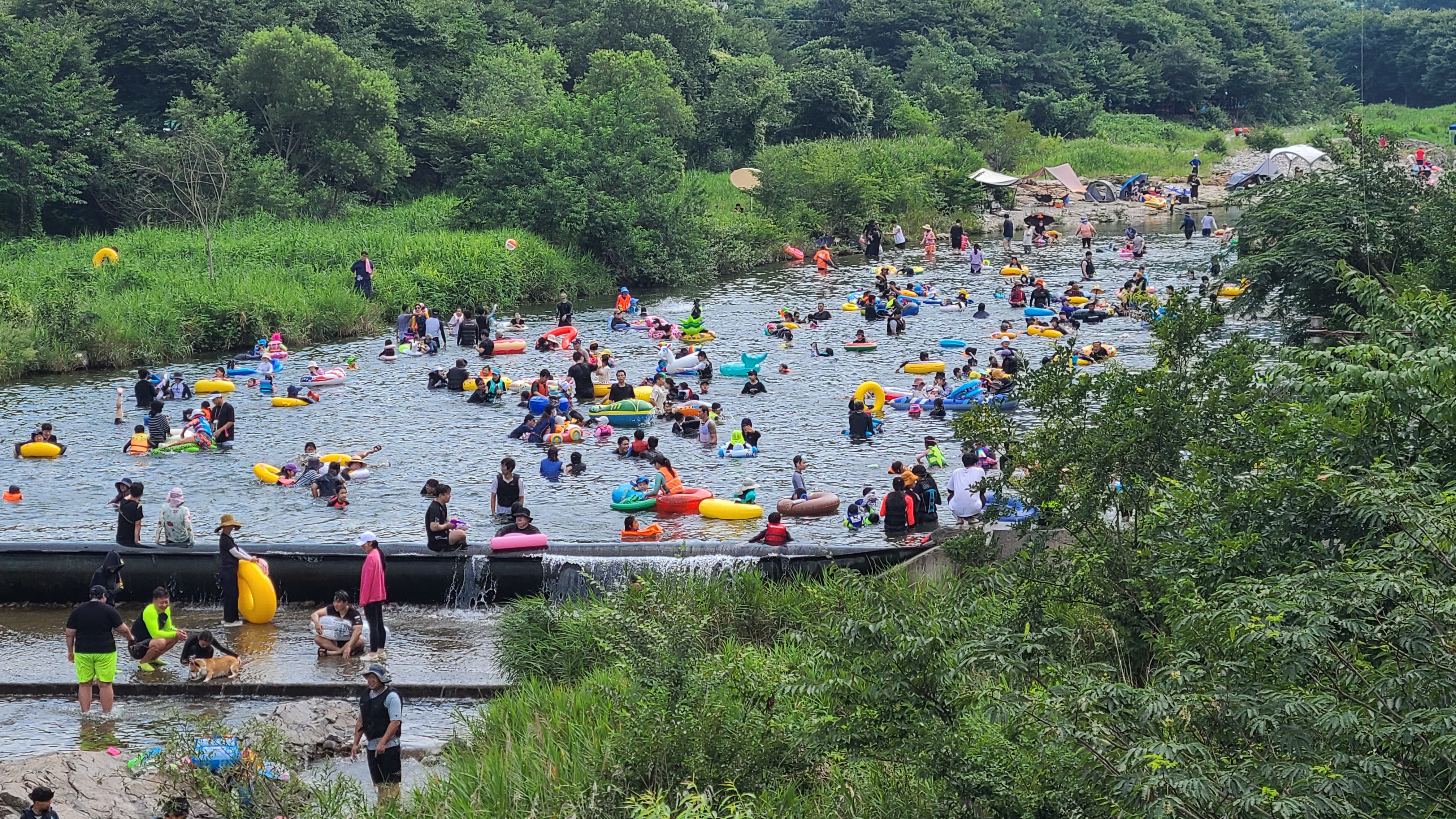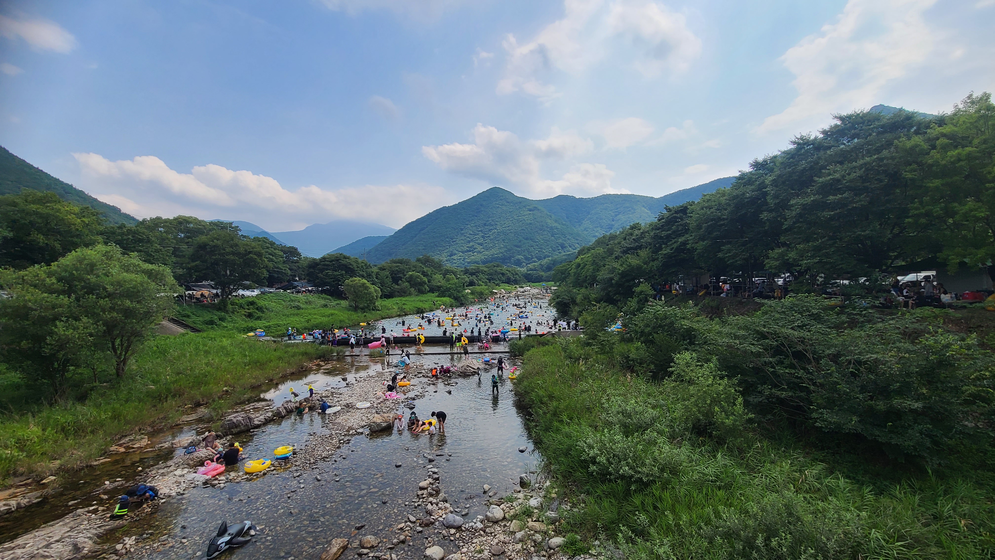 청도 소머리캠핑장 윗쪽은 초등생 정도 되는 친구들이 함께 즐길수 있는 물 높이 이며 아래쪽은 애기들이 물장난 칠수 있는 수위.
