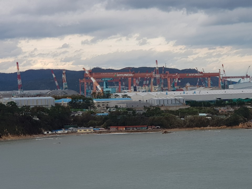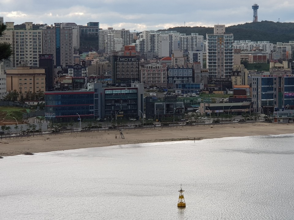 울산 동구 모래사장이 한눈에 들어 온다, 동구의 바다는 수온이 차가워서 한여름쯤 되어야 사람들이 바다에 들어간다.