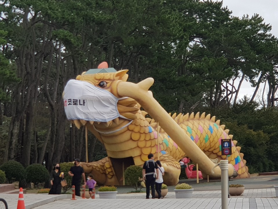 입구에 있는 용 미끄럼이 코로나 때문에 마스크 까지 착용한 상황, 얼마나 심각한지 알수 있는 사진이라 생각됩니다. 지금 울산은 815 광복 집회 이후 후 폭풍이 심각한 상황입니다. 아이들은 학교도 가지 못하고 시민들은 불안한 마음으로 하루하루 생활하는 것이 고통으로 다가 올 것이라 생각됩니다. 아무리 집회도 좋지만 이런 코로나 상황에 서울까지 가서 코로나 감염되어 온 사람들을 울산 시민들은 어떻게 생각 할까요?