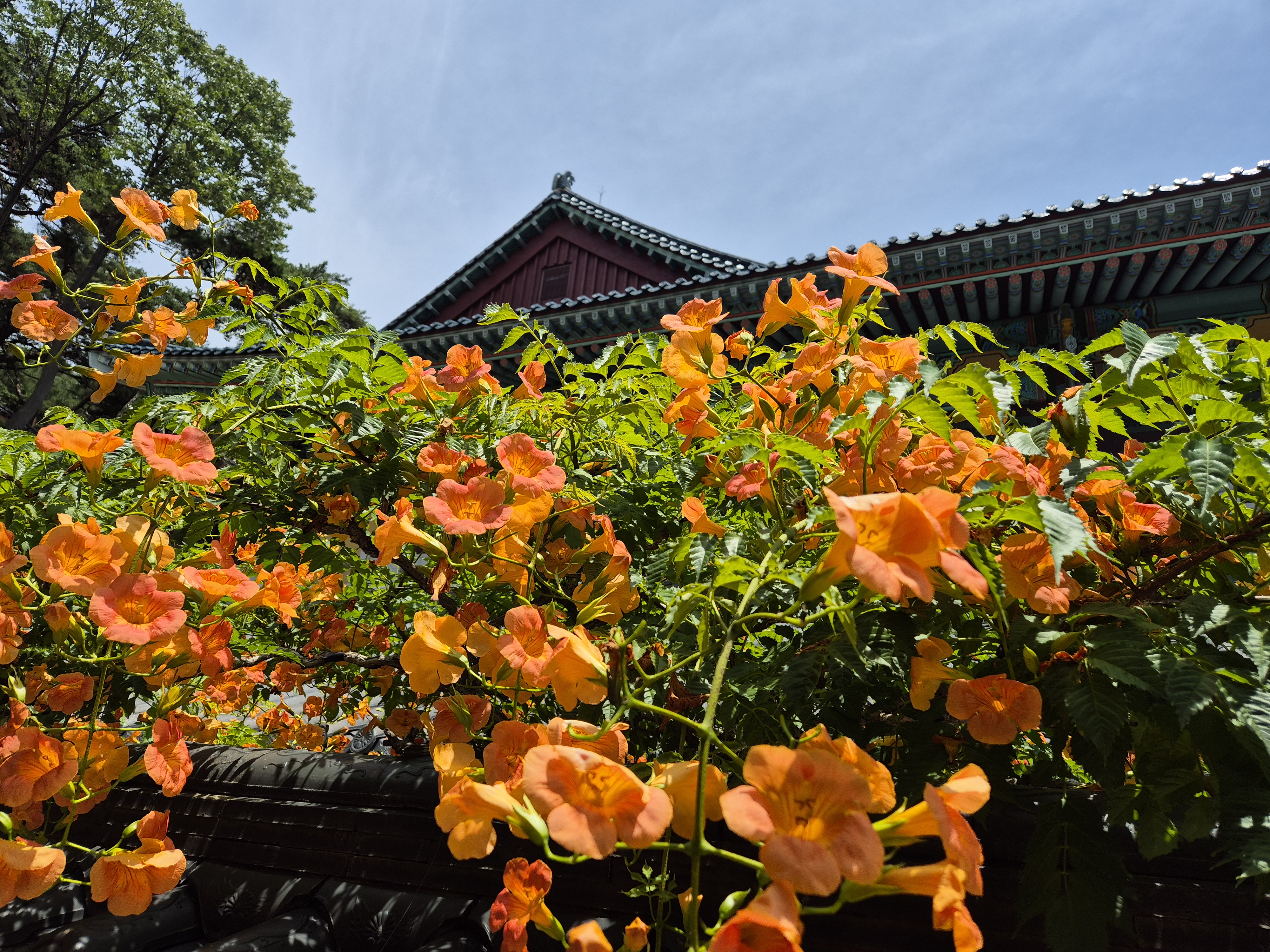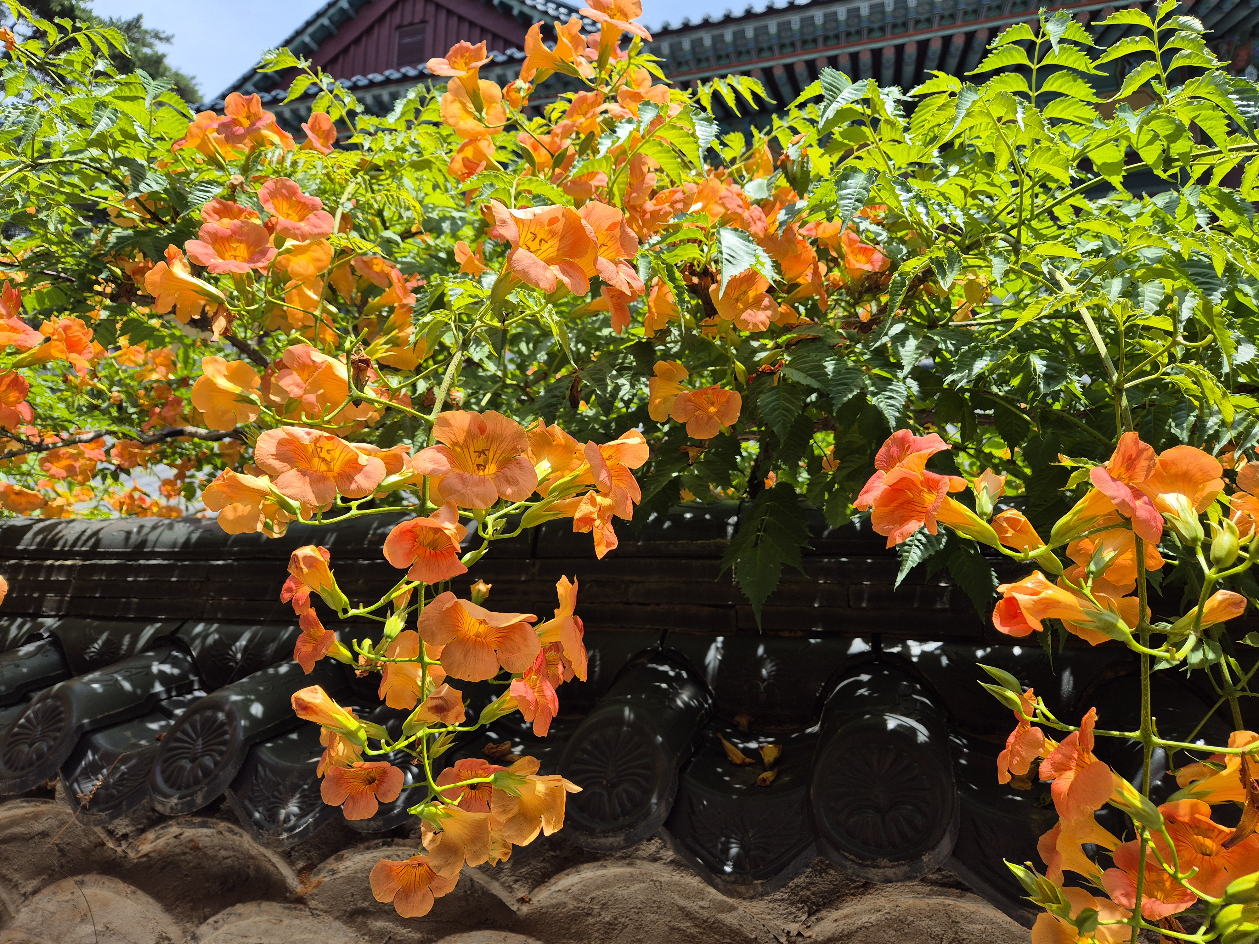 여름 정원을 수놓는 주황빛의 매혹적인 꽃, 능소화